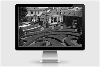 | При наведении мышки на изображение, оно с бесцветного заменяется на цветное | При наведении мышки на изображение, оно затемняется и появляется подпись, например, названия раздела для перехода |